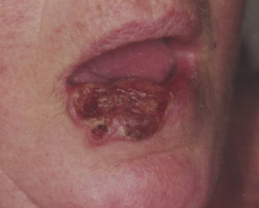 Radiotherapy results in tissue conservation - see lip cancer example below.